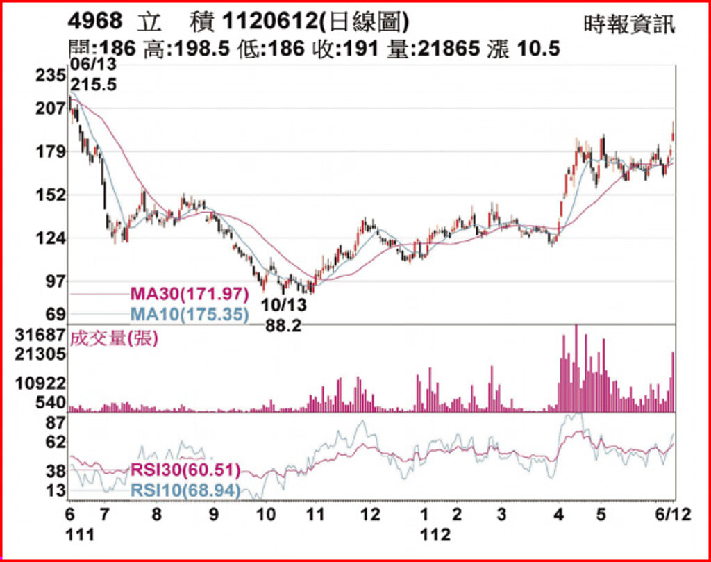 立積12日股價強勢,開盤強勢跳空站上186元,盤中觸及漲停價198.5元,終場漲5.81%、收191元,投信連三日買超,共買進1,582張,外資亦站在買方,總成交量持續增溫,法人預估,訂單需求維持之下,緩步回溫,下半年擺脫泥沼,營運逐季轉佳,回到正常成長軌跡。 |