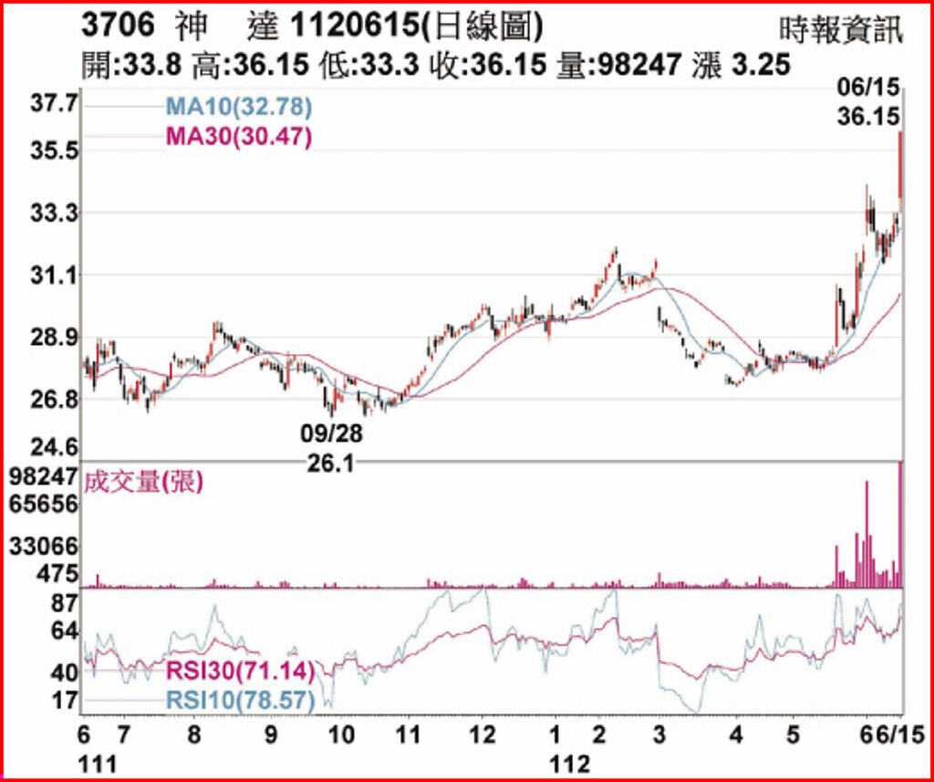 在接連有輝達AI伺服器和超微最新第四代AMD EPYC處理器的高性能伺服器新品加持下,神達15日內外法人買單進駐下,盤中攻上36.15元亮燈漲停後一路鎖至收盤,站上近六年高點,單日成交量逾9.8萬張、成交值34.5億元。