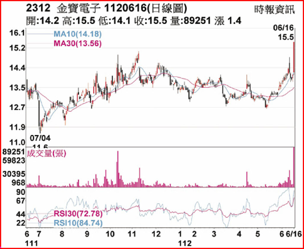 金寶16日以平盤附近開出後,吸引特定買盤挹注,午盤左右直攻漲停版價位15.5元,交易量較前一日倍數放大,來到8.9萬張。值得留意的是,外資單日大舉買進1.47萬張,連續二日累計買超1.71萬張,持股信心明顯大增。 |