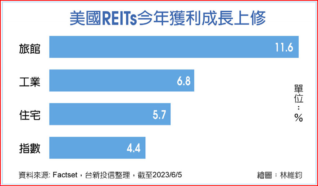 台新北美收益資產證券化基金經理人李文孝指出,美國REITs第一季財報佳,獲利成長最高的是旅館、工業、住宅,也帶動美國REITs今年整體獲利成長率上修至4.4%。其中工業物流首季需求熱度不減,整體租金成長與承租率皆維持高峰,預期租金可上漲10%,各公司財報結果皆優於預期,並提高全年獲利展望,工業REITs同店淨利增長持續維持較高水準,顯示產業基本面強勁,財務狀況也健全,負債比低與資金流動性高,較能承受資金緊縮的環境。