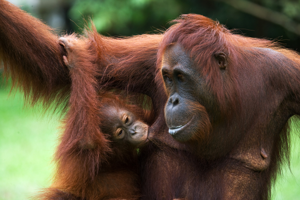 猩猩是智商高的動物,甚至還懂得與人類互動。美國一名母親近日帶3個月大的兒子,前往肯塔基州一座動物園參觀,當走到靈長類動物展區時,一隻紅毛猩猩看到了寶寶,隨即用手輕敲玻璃窗,示意想近一點看嬰兒,之後還送上2個吻。