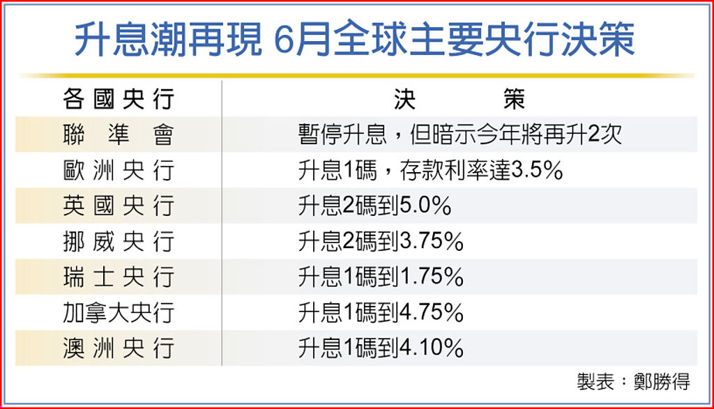 報導指出,儘管各大央行過去18個月來持續升息,但許多先進國家的通膨形勢依然高燒不退。借貸成本大幅攀升的結果,甚至引發金融危機以來最嚴重的銀行業危機。