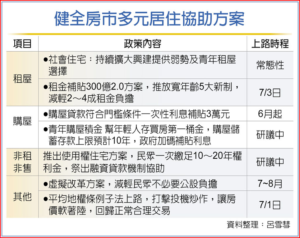 至於「青年購屋積金支持機制」及使用權住宅,據悉,府院不定期開會研議中,針對配套集思廣益,並未中斷政策規劃。