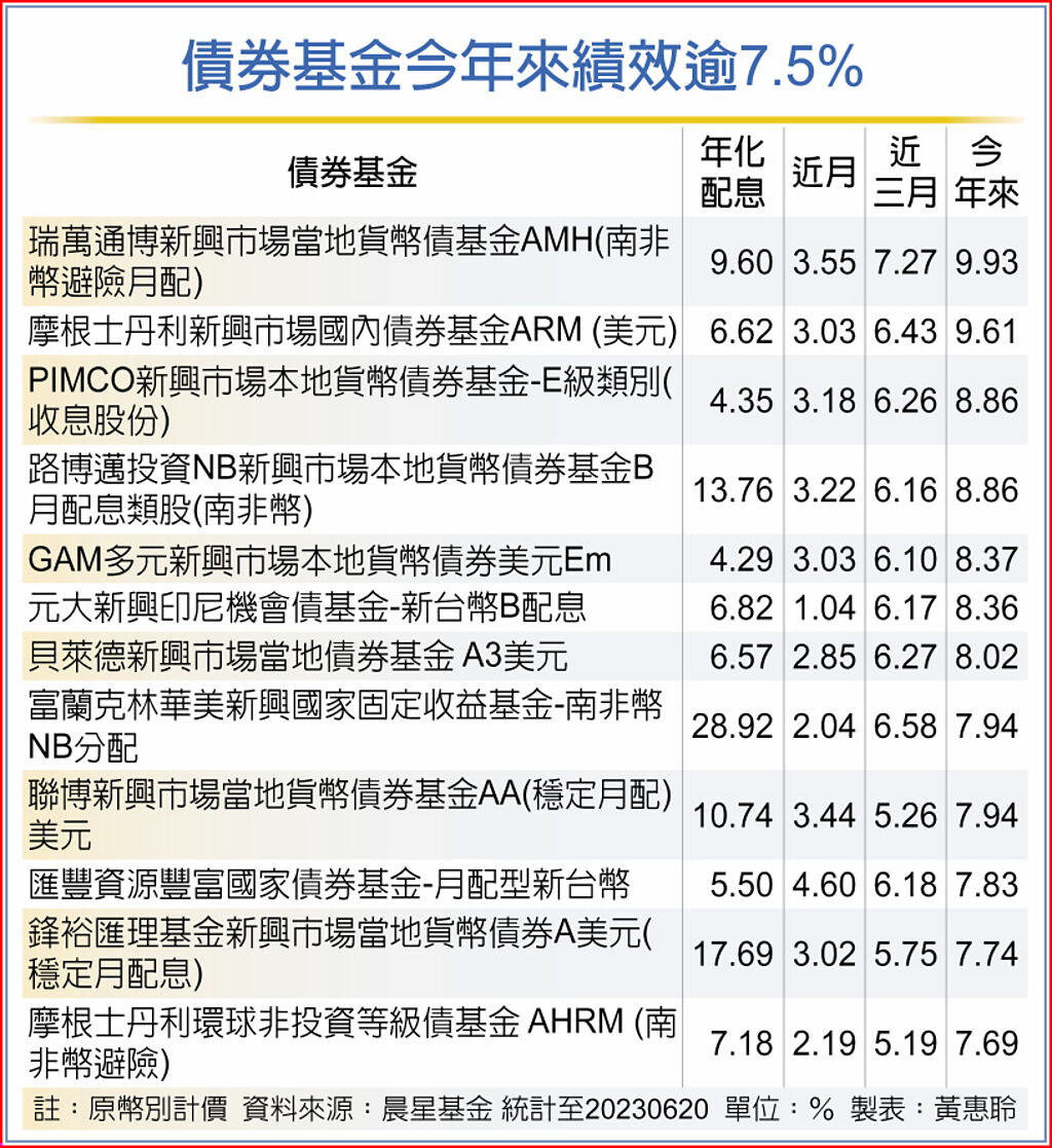 第一金投信指出,美債殖利率處3.3%~3.8%區間,近體整體債券波動回穩,通膨未再大幅攀揚,美聯準會(Fed)升息暫停、後續升息空間相對有限,加上原先市場預期經濟衰退,近期則轉趨正向,在經濟韌性相對提升之際,也使得非投資級債、新興市場債等風險信用債表現勝出。