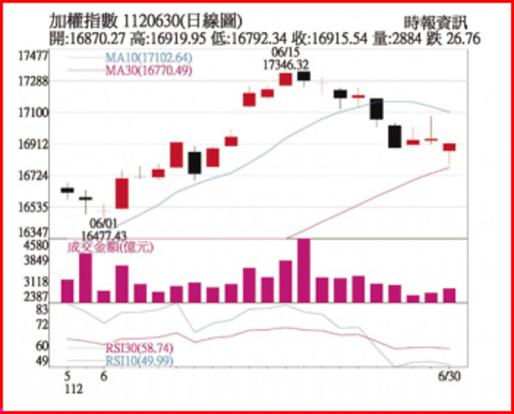 7月即將進入除權息旺季,若以期貨月結算的觀點來觀察,加權指數7月結算前因為除息關係,指數將蒸發284點,影響最大,8月則有71點被蒸發,至10月指數將因為除息,使大盤共被蒸發約400點,電子指數蒸發15.36點,金融指數蒸發36.66點。個股來看,7月19日台指期結算前進行除息,其中長榮蒸發點數最多,其次分別為鴻海、陽明、聯電、日月光投控、中華電,若填息行情不理想,指數會因為除息蒸發點數關係,大盤恐有下探空間。