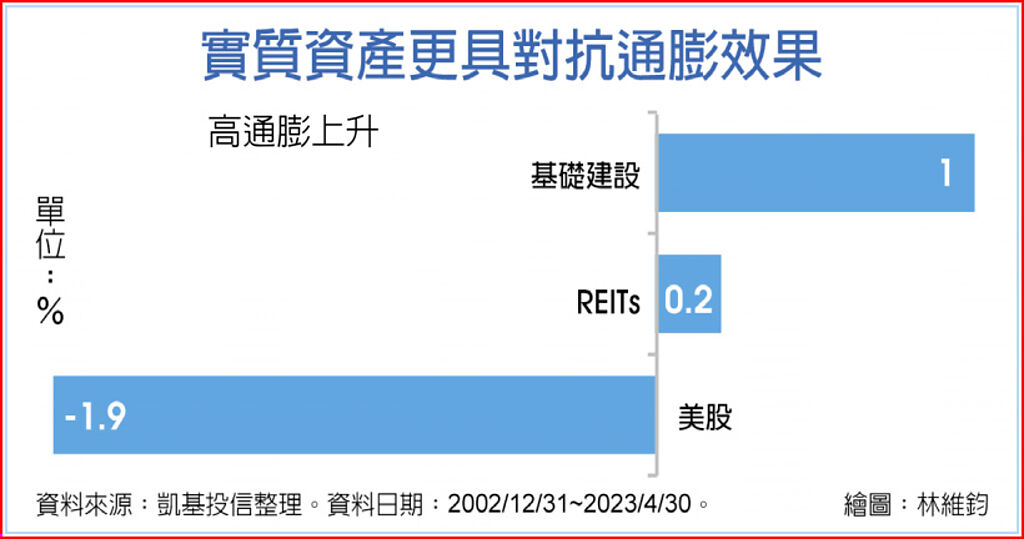 無論接下來通膨上或下,實質資產相對更能展現其韌性,受惠產業與投資趨勢雙重帶動、實質資產不失為挺過景氣放緩階段的投資好選項。