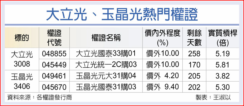 玉晶光是供應iPhone光學鏡頭大廠,今年第一季EPS為2.11元,創近7季來低點,第二季受到客戶新舊產品交替影響,4、5月營收走低,不過隨著三大新產品線陸續進入量產出貨階段,預期下半年業績有機會顯著跳升。