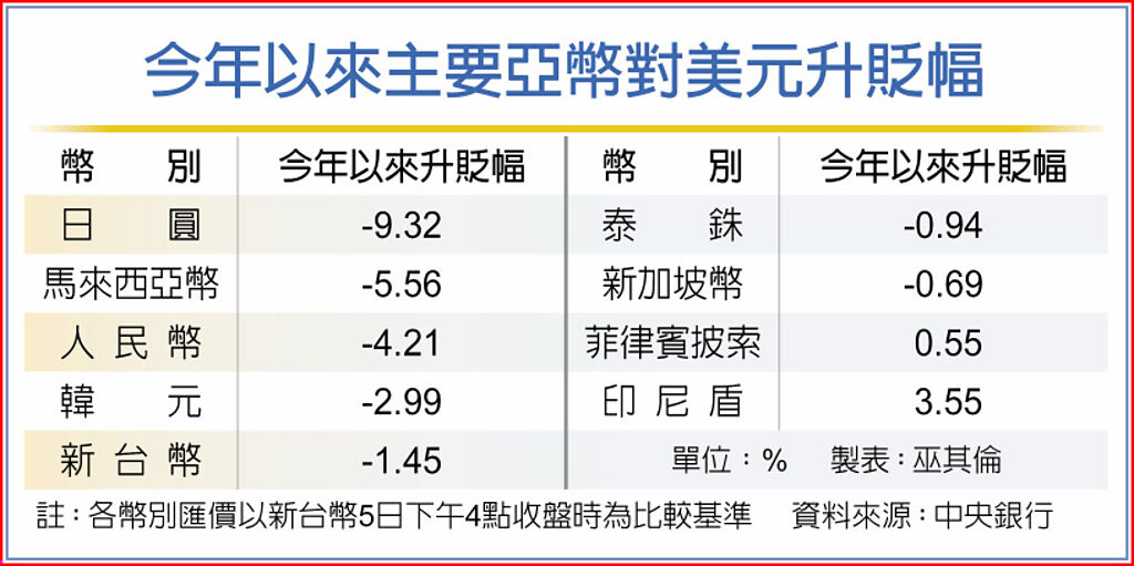 蔡烱民表示,去年很明顯是因為外資賣超台股並匯出,導致新台幣貶值;但今年狀況不太一樣,整體來看包括進出口商、國人對外投資等大致均衡,外資進出不是影響新台幣貶值唯一因素,「大家對匯率沒有強烈預期」,央行就按照市場供需來調節。 |