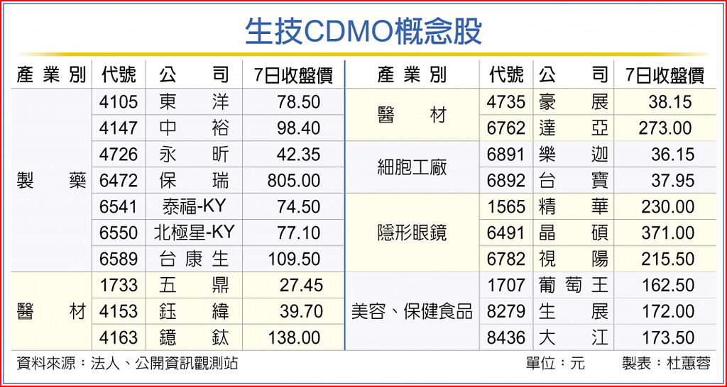 「亞洲生技大會」將於7月26至30日登場,CDMO(委託開發暨製造服務)股再掀熱潮,受惠股王保瑞(6472)成為多頭點火指標,大江(8436)、台康生(6589)、台耀(4746)、中裕(4147)等參展股在議題加持下,股價蠢蠢欲動,有機會吸睛又吸金。