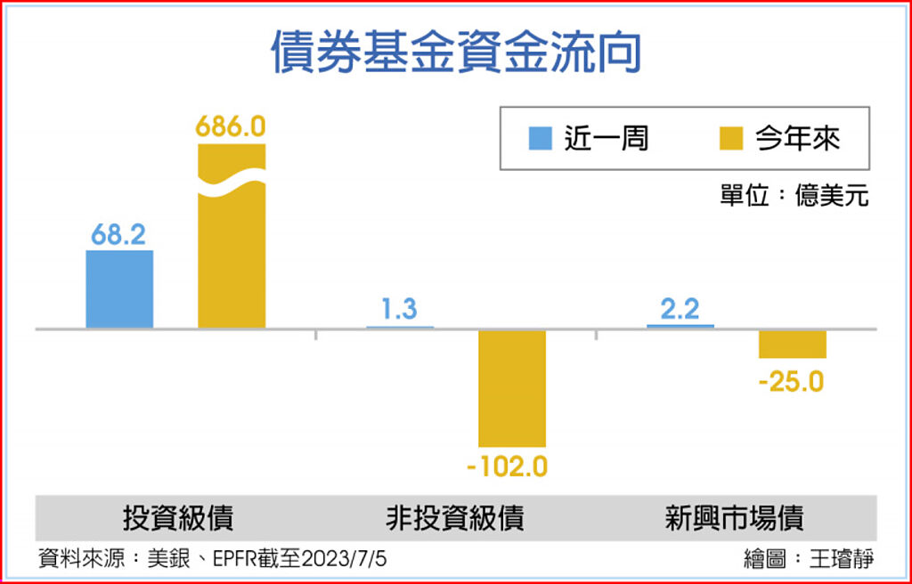 美國最新就業數據和聯準會(Fed)會議紀要,市場預期之後升息機率拉高,加上美國公債殖利率後半周出現明顯升幅,債市出現波動。據美銀美林統計,過去一周主要債市迎來資金淨流入,包括投資級、非投資級與新興市場債皆迎來資金淨流入,債市動能仍顯穩健。