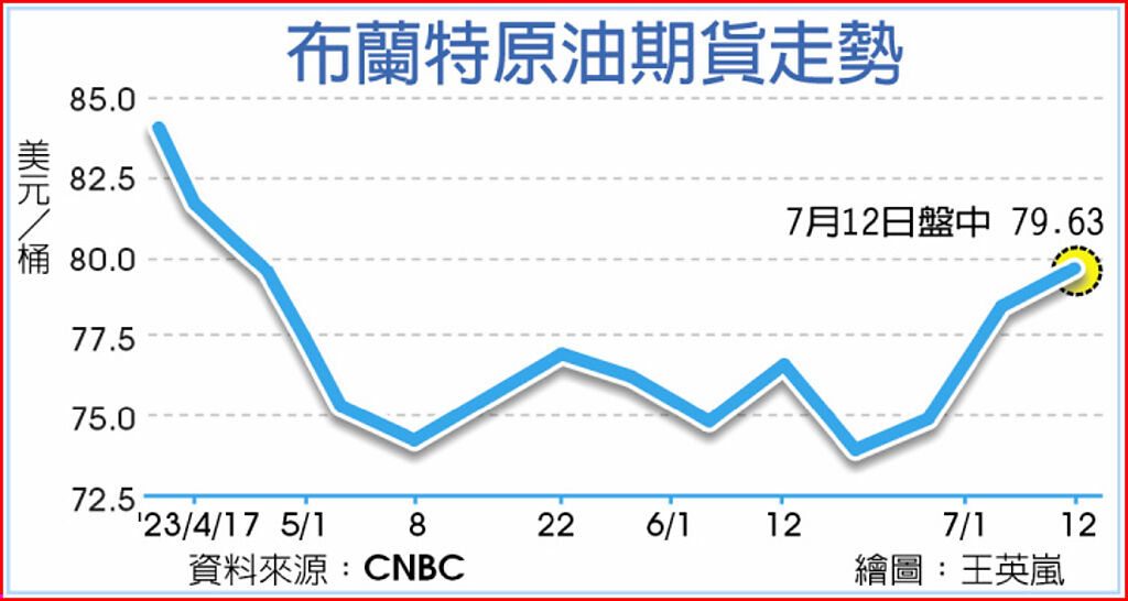 紐約西德州期貨12日盤中每桶小漲0.1%報74.9美元再創兩個半月新高。倫敦布蘭特11日創兩個半月新高後,12日盤中在79.4美元平盤附近震盪。美元過去一周貶值,讓以美元計算的油價近期相對走強。沙烏地阿拉伯等產油大國減產和市場看好發展中國家需求,也有利油價走高。 |