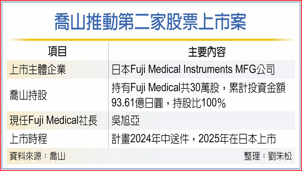 喬山內部規畫Fuji Medical將於2025年在日股掛牌,成集團第二家股票上市公司。