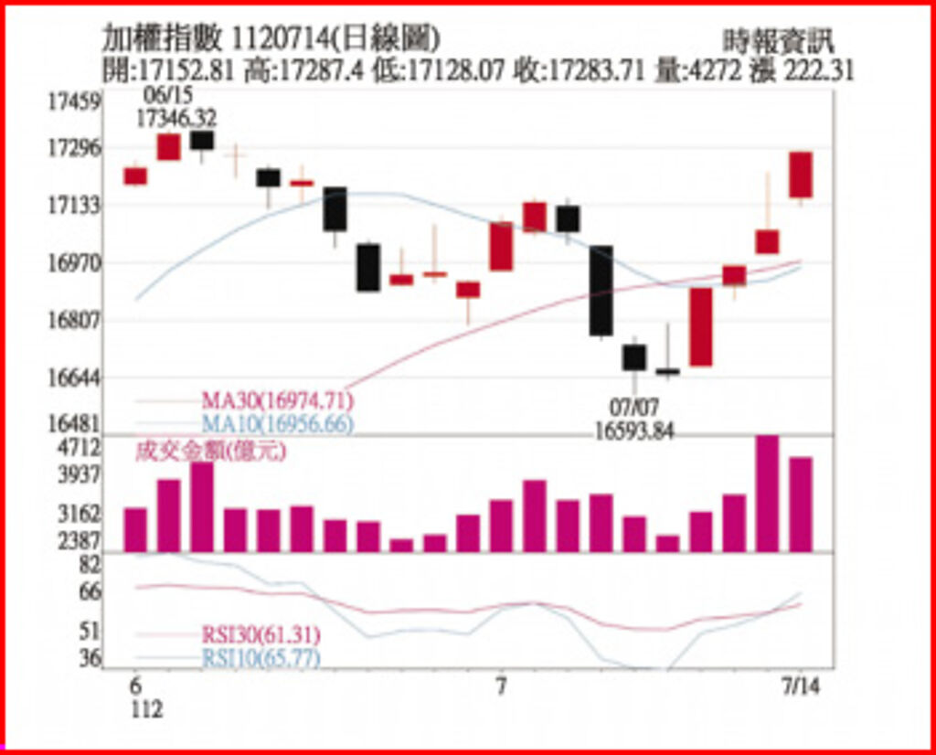 資金面美元指數下跌,短線新興市場貨幣反彈,美國6月消費者物價指數(CPI)優於預期,美元指數DXY兌其他貨幣下跌滑落100關卡。新興市場(人民幣除外)陸續反彈,新台幣可望從31.5開始反彈,新台幣轉強時外資賣壓延後,加上台積電與科技股財報周登場,外資有機會再轉向翻多。