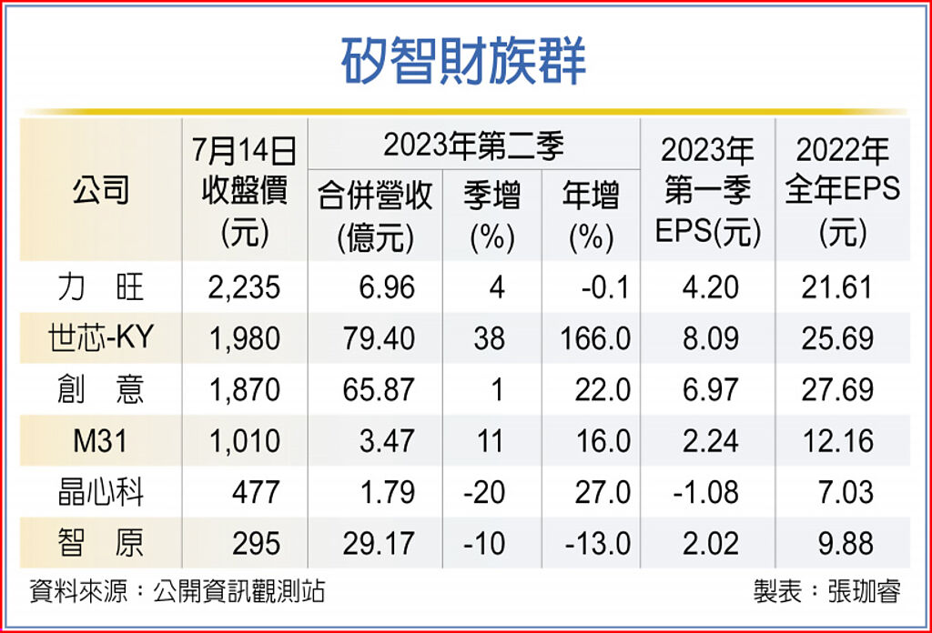兩者股價在近期也持續寫歷史新高,其中世芯更率先突破2000元關卡,挑戰股王地位。截至14日收盤,9檔千金股當中,矽智財族群便涵蓋了4檔,其中包括世芯、創意、力旺(3529)和M31(6643),正式宣告台股AI時代的到來。