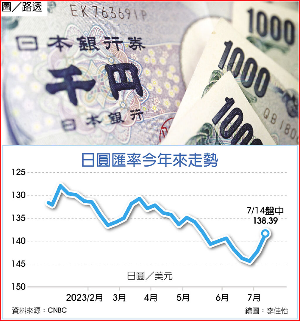 日本銀行(央行)將於月底召開決策例會,市場預期不僅將調整殖利率曲線控制(YCC)政策,並上修通膨預測,激勵日圓14日一舉強升至兩個月新高水準。