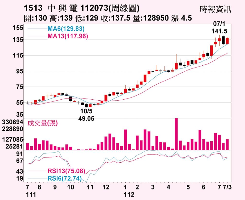 中興電(1513)獲台電及民間企業訂單挹注,加上統包工程,目前在手訂單高達330億元,氫能事業又計畫下半年進行分拆,14日除息首日,外資轉賣為買,抵銷投信及自行商調節持股的影響,三大法人合計買超7,760張,終場大漲7元而以137.5元收盤,順利完成填息。