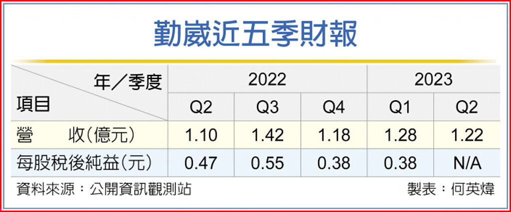 勤崴最早以電子地圖、導航軟體起家,爾後再跨足車聯網平台、路況資訊及自駕車系統等等。該公司表示,隨著5G的成熟,將帶動高精地圖和車路雲等需求。勤崴6月營收0.57億元,年增63.28%,就是受惠於代理產品與中華電信的資料授權的合作。累計前六月營收2.51億元,年增14.08%,業績成長動能之一為中華電信5G專案合作業務所帶動。