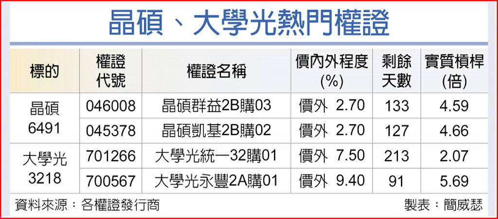 眼球概念股股價經過一波修正,復甦機會再現,元富投顧看好晶碩(6491)將進入雙11拉貨旺季,升評「買進」,推測合理股價474元;永豐投顧則青睞大學光(3218),認為第三季進入暑期旺季,預期營收及獲利將再戰新高,推測合理股價460元。