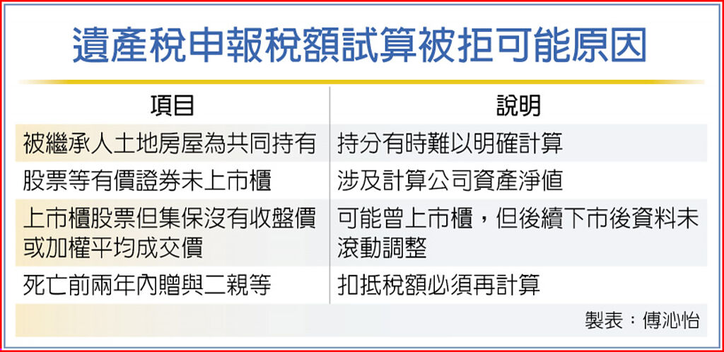 不少人可能連自己名下有多少帳戶都記不清,更不要說搞清楚父母的財產狀況。財政部2022年起提供的遺產稅申報稅額試算服務,可讓民眾一指掌握相關資料,在經一年半的辦理後,財政部也整理出四大樣態可能不符試算條件。