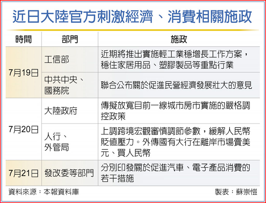 大陸知名產經觀察家丁少將表示,目前大陸消費電子、家電消費處於下行週期,官方公布相關政策主要鼓勵企業透過AI等技術達到產業升級、產品叠代,進而促進行業消費,推出若干措施將帶動與推動行業智慧化、綠色化升級,有利於提振相關消費。