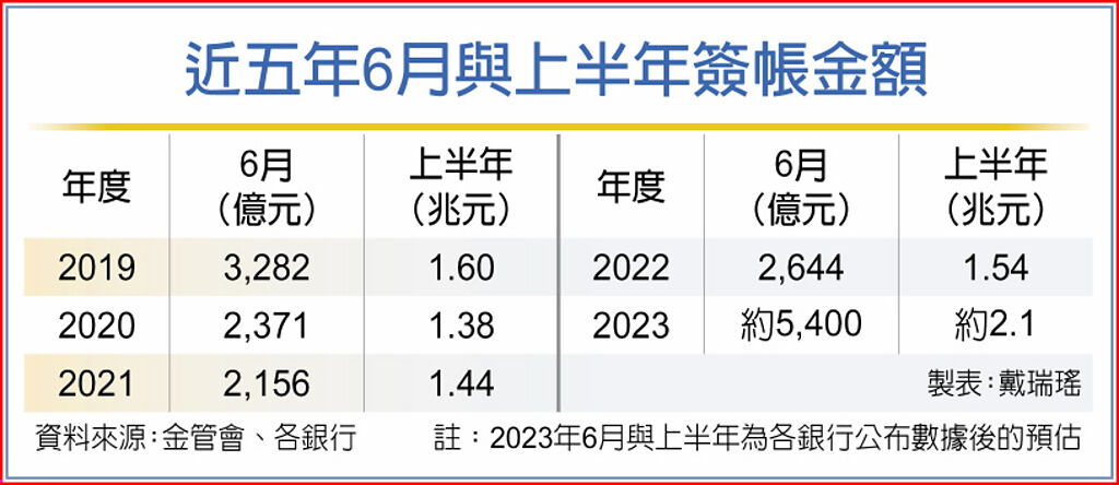 6月整體信用卡簽帳金額大爆發,單月高達約5,400億元,不僅創單月歷史新高,上半年國人已刷破2兆元大關,也是史上同期最高紀錄。下半年暑假出遊潮緊接著登場,加上年底消費旺季,大型發卡銀行預估,消費將持續爆發,全年可望再創歷史新高,不只百貨、電商,旅遊相關卡別也受激勵,刷卡消費前景一片大好。