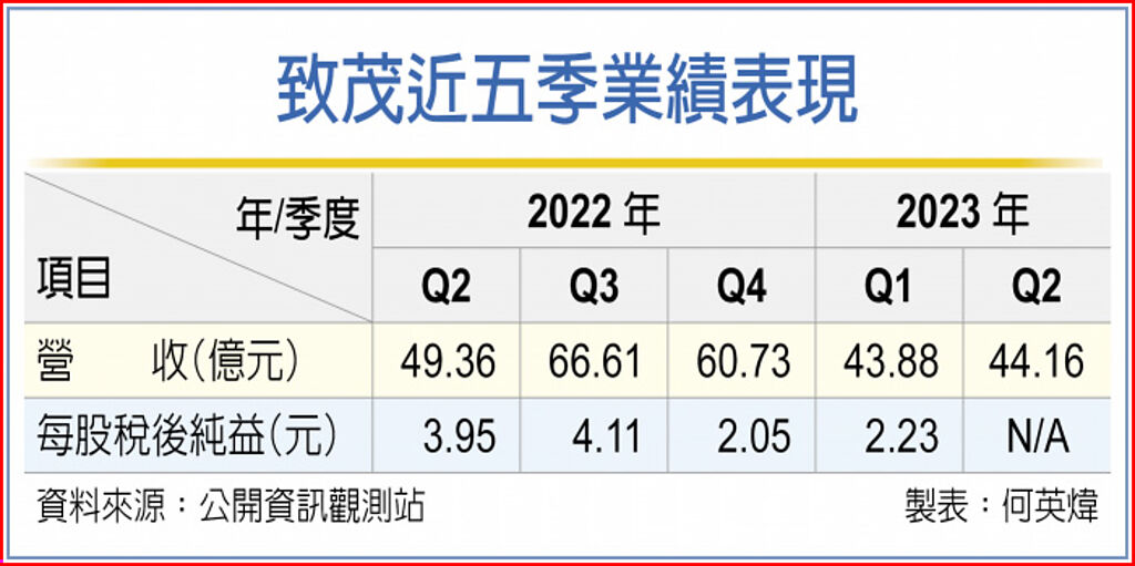 不過,致茂第二季表現低於業界預期,主要是受到旗下子公司營運的影響,另一方面也受到SLT產品的延遲出貨。該公司第二季營收44.16億元,年減11.7%,2023年上半年營收88.04億元,年減5.67%,第一季稅後純益9.37億元,較去年同期成長約1成,每股稅後純益2.23元。