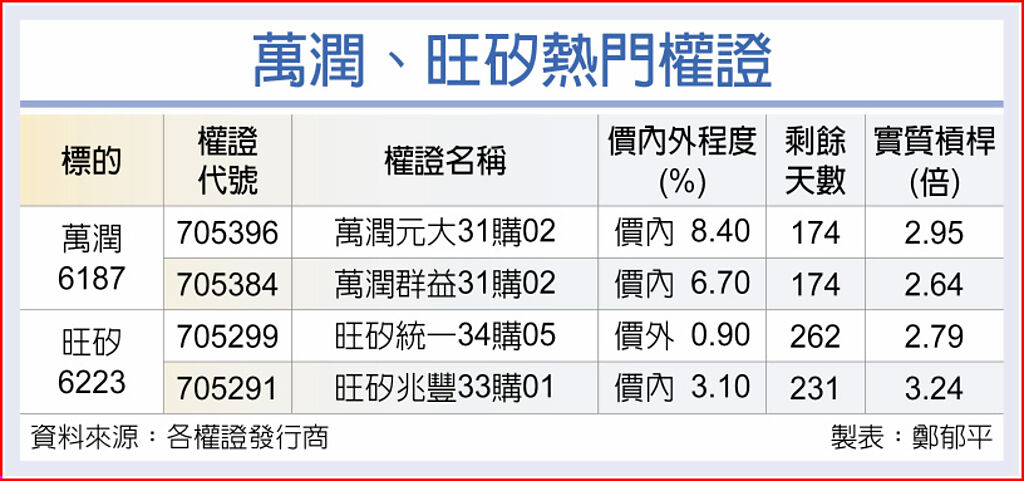 受惠人工智慧(AI)晶片訂單需求,先進封裝產能供不應求,台積電(2330)宣布斥資近900億元,於竹科銅鑼園區投資先進封裝廠,概念股大發利市、吸引買盤搶進,萬潤(6187)、旺矽(6223)25日雙雙大漲逾6%,旺矽盤中衝破200元大關,締造新天價。
