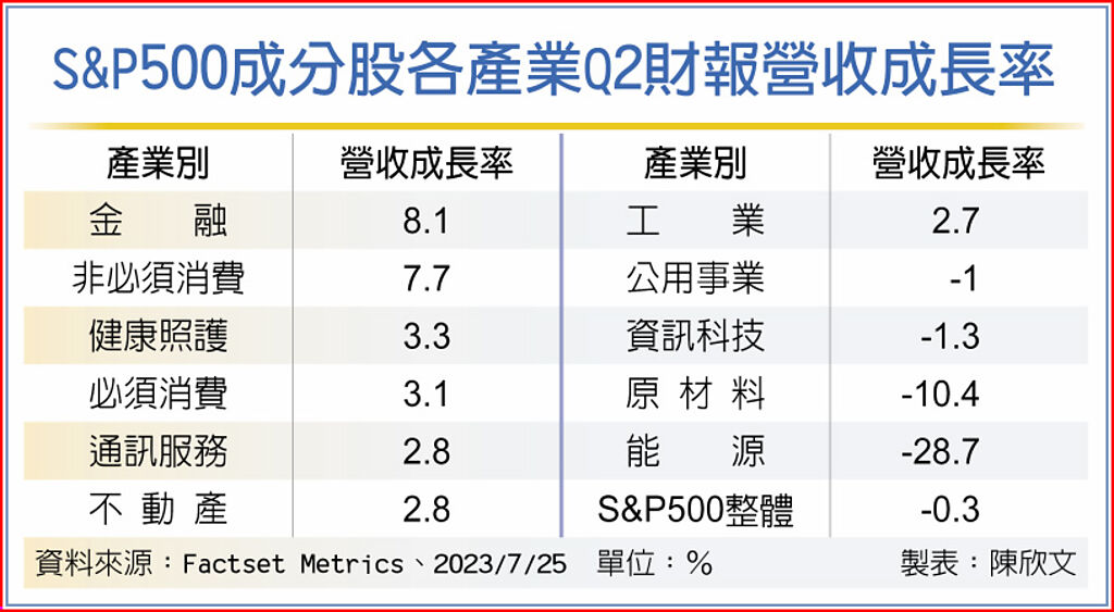 美股企業財報陸續公布中,據數據研調機構FactSet統計,目前已公布的S&P500指數成分股中,有近61%的企業營收優於預期,其中以金融、非必須消費及健康照護表現居前,分別近8.1%、7.7%與3.3%。投信法人表示,美國就業及內需服務景氣仍溫和擴張,經濟基本面有一定支撐,加上通膨及政策利率高點已過,有利金融市場壓力舒緩,企業獲利表現有望逐季改善,後市表現仍值得關注。