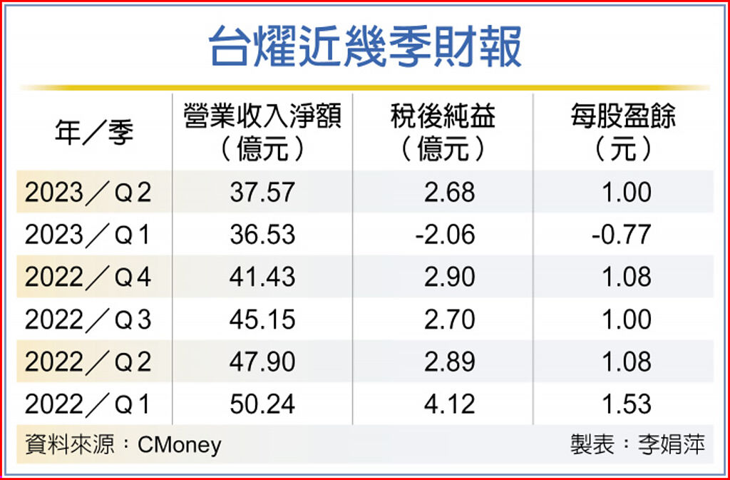 台燿第二季稅後純益2.68億元,較首季轉盈,年減7.32個百分點,每股稅後純益1元。上半年營收74.09億元,毛利率18.32%,年減0.47個百分點,上半年稅後純益6,194萬元,年減91.17%,EPS 0.23元。台燿第一季雖因認列所得稅4.96億元,造成單季虧損,但已由第二季的獲利弭平,回復正常獲利狀況。 |