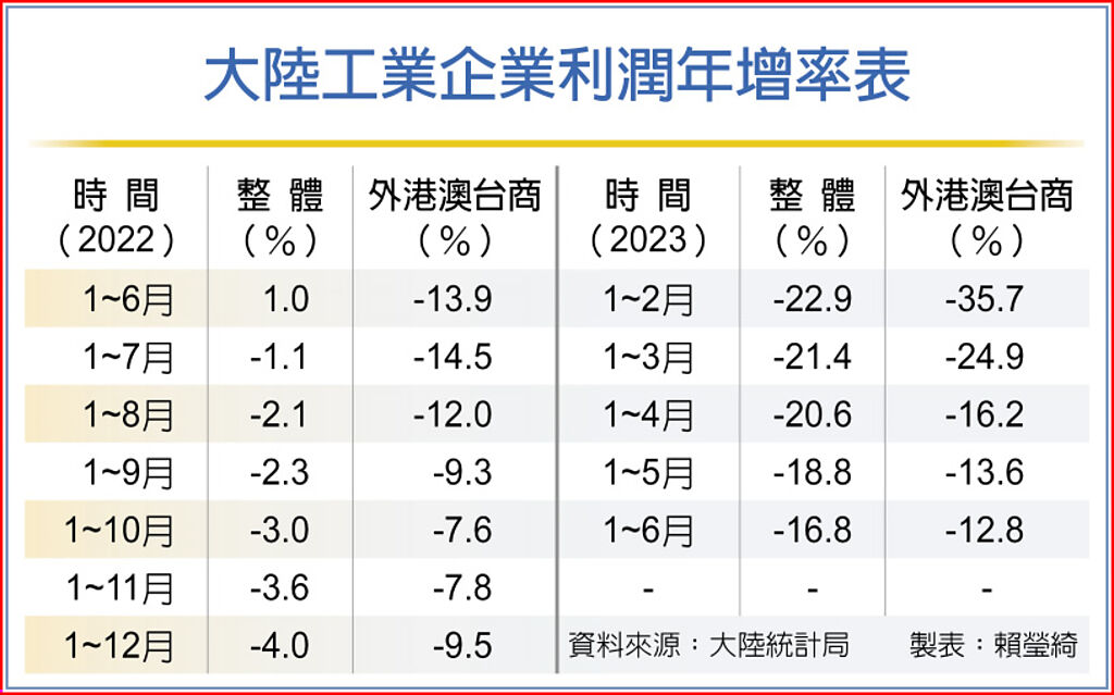 大陸國家統計局27日公布最新全國規模以上工業企業利潤表現,6月年減8.3%,上半年年減16.6%,降幅均連續四個月縮小,顯示企業利潤正穩步恢復。展望下半年,專家指出,工業企業利潤降幅或將繼續收窄,但企業仍會面臨內外需及房地產不振等壓力。