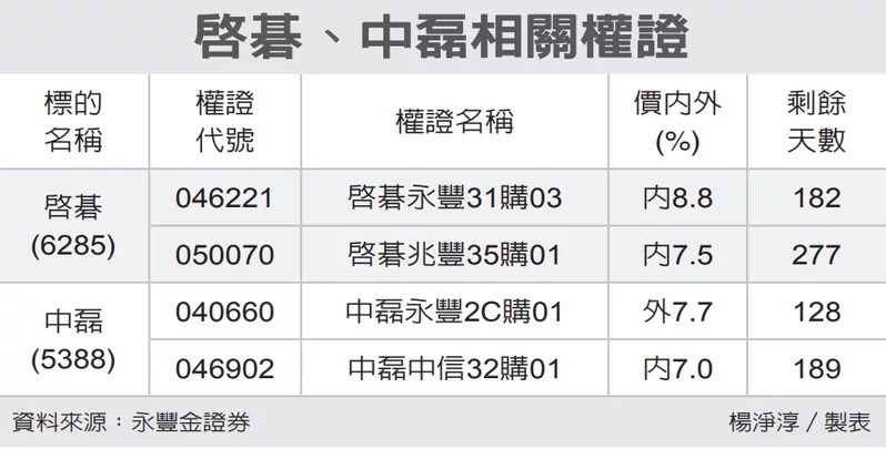 看好啟碁、中磊等網通股後市的投資人,可買進價外20%至價內10%、距到期日60天以上認購權證,參與個股的波段行情。 |
