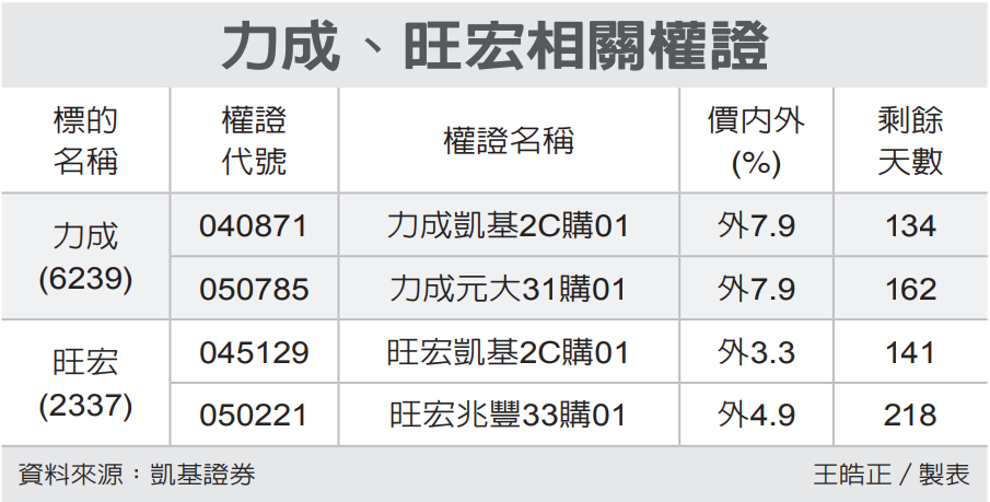 權證證券建議,若投資人看好此兩檔,可以選擇價內外幅度10%以內、距到期日120天以上權證介入。 |
