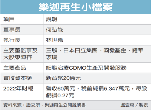 主要從事細胞治療產品委託開發暨製造服務(CDMO)的樂迦再生(6891),由臺灣三顧、日本日立集團等公司與國發基金合資成立,昨(31)日送件申請股票上市,是繼巨鎧精密、鴻華先進、金萬林後,今年第四家申請掛牌臺灣創新板的公司。