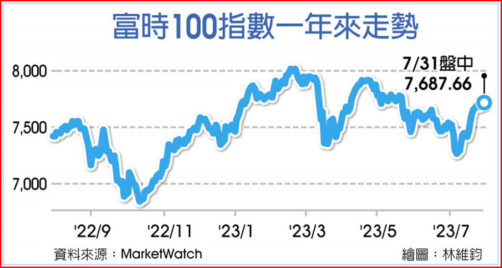 英國股市7月31日受飲料股走跌拖累而在盤中下跌,但市場預期近來通膨降溫將使7月月線收紅。全球第二大啤酒製造商海尼根稍早下修財測,導致股價在31日盤中下跌0.9%,拖累富時100指數在盤中下跌0.1%至7,687.66點,但市場預期7月月線上漲2%。英國最新數據顯示6月通膨率從8.7%降至7.9%,低於市場預期。 |