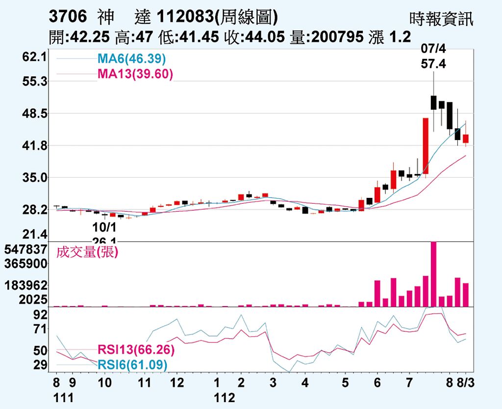 神達(3706)由於旗下神雲科技研發並量產HPC以及AI伺服器應用產品,7月接到Intel資料中心相關業務後,AI伺服器效應將繼續發酵。儘管上半年業績衰退,但第二季營收回到百億元以上,季增13.67%,EPS 0.59元,較上季EPS 0.13元季增353%。單季營收衰退幅度從第一季的20.24%,縮小到第二季的11.18%。