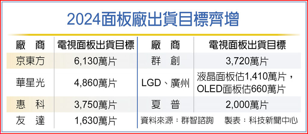 群智諮詢指出,運動賽事、抄底備貨和紅海航運問題,刺激面板備貨動能短期恢復,但全年恢復力道仍取決於終端需求。在品牌採購多元化策略之下,台灣及日韓廠商需求逐步好轉。