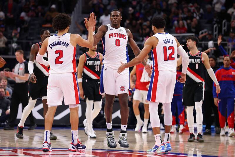 活塞22分逆轉拓荒者,本季勝率首度站上5成。(法新社)