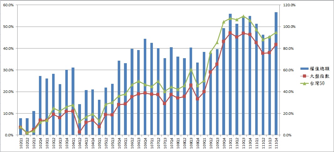 空中樓閣已然形塑,隨時有崩塌可能,惟時機總出人意料,僅能防範,無法完全規避。權值指數不敵大盤與台灣50指數,此結果對本人研究方向與策略規劃具象徵意義:投資,就是驗證判斷的過程,思維邏輯與心理素質決定成敗。
