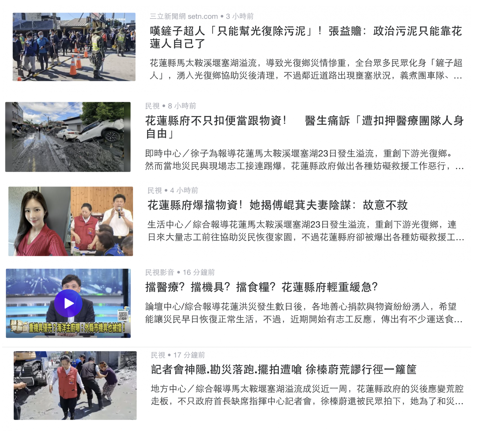 花蓮人的災難就是三立民視壹傳媒周X蔻為民進黨造謠撥糞最好的時機。