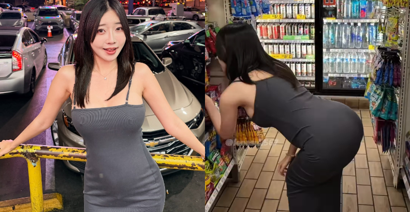 人到了國外也該開放起來了,在歐美國家女生不穿內衣可是稀鬆平常的事!這位來自台灣的巨乳正妹「玲奈Lena」也決定入境隨俗,穿上貼身的灰色細肩帶洋裝,前凸後翹的完美曲線窈窕迷人,在便利商店內挑選零食可見翹起的火辣屁股蛋,渾圓飽滿的形狀真讓人捨不得眨眼!