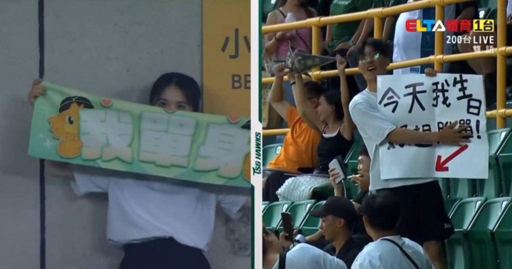 台鋼葉保弟昨天敲出逆轉3分砲奪勝,發表感言時,導播把畫面帶到台下觀眾,拍到一名女子手舉「我單身」的毛巾,接著又拍到場邊另一名男子,舉著「今天我生日,好想脫單」的手寫海報。導播甚至特地將畫面放在一起,讓2人合體,引發全場暴動。