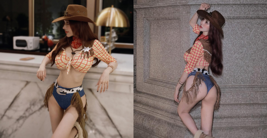越來越接近萬聖節,網路上也越來越多變裝照,但看了這麼多,都沒看過像這麼「胸」的胡迪啊!JKF女郎雲嫣最近參加萬聖變裝派對,化身人氣動畫角色《玩具總動員》系列的胡迪警長,只是雲嫣身上的布料特別少,上下全都露,巨乳、翹臀真的超辣!