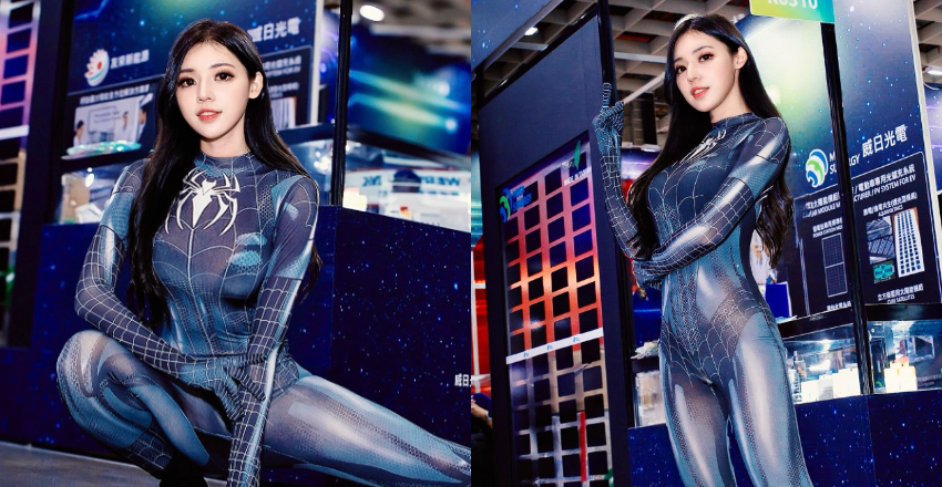上週萬聖節,可以看到許多正妹都變裝走上街頭,而剛好要去能源展工作的JKF女郎謝立琪Kiki,也應景變身成「黑蜘蛛人」,穿上一套超貼的緊身衣,可以將她完美的曲線看光光,雖然包緊緊但還是好性感,謝立琪Kiki還透露自己的裝扮得到了比賽第二名呢!