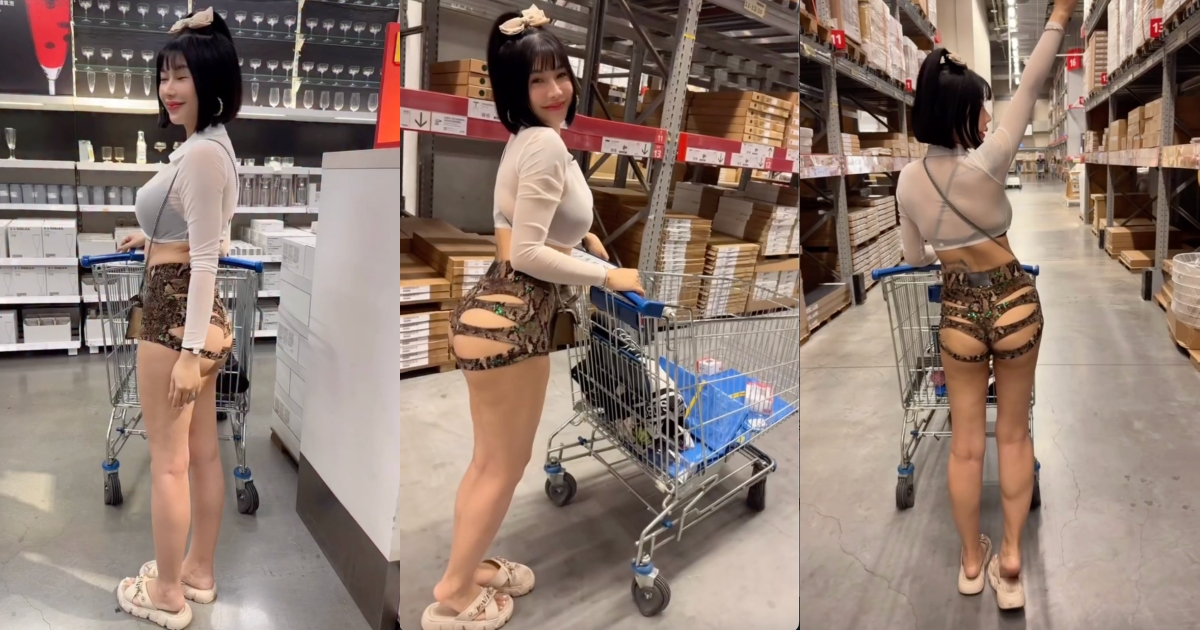 逛大賣場變成很多人的休閒樂趣了吧,有事沒事就去逛逛添購東西,畢竟這些大賣場經常會推出爆紅商品~一定要去跟一波熱鬧!沒想到最近去逛大賣場居然驚見巨乳辣妹的「短褲」整個炸裂!從背後看過去大約80%的臀部面積都在外面,啊捏乾丟?