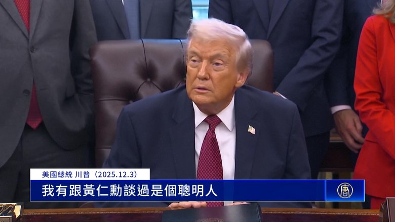 【新唐人亞太台 2025 年 12 月 04 日訊】輝達執行長黃仁勳,週三與美國總統川普會面。會後,川普表示,他已經向黃仁勳重申晶片出口管制的立場。黃仁勳則表示,中方不會接受降規版晶片。