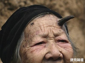 河南省魯山縣林樓村村民張瑞芳從去年開始頭部左上方慢慢長出硬角,如今已長到約5厘米長,其頭部右上方也有角質物頂破頭皮。張瑞芳已過百歲,生有6男1女,如今和60多歲的兒子張國政一起生活。