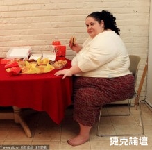 美國新澤西州一名42歲的女子唐娜辛普森,雖然目前體重已高達272公斤,但她卻不顧一切地瘋狂進食,希望讓自己的體重最終超過453公斤,成為全世界最重的女人及第一位'半噸肥媽',並靠著這雷人稱號一夜成名,帶來滾滾財富。