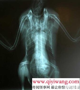 X光照片:野鴨胃中有表情痛苦的外星人據了解,5月21日,美國國際鳥類營救​​研究中心從舊金山灣區一所研究中心接收了一隻受傷的野鴨,這是一隻公鴨,翅膀明顯受傷,醫療人員在對它進行身體X光檢查時,意外地發現了胃中竟有一個被吞食的外星人。研究中心女發言人卡倫·本茲爾說,“這隻野鴨很快就死了,在進行X光透視中,它表現得很平靜,並沒有什麼異常。但X照片卻讓研究中心沸騰了起來!”