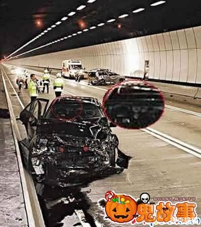 據說車禍的死傷者已經被擡出車外,但是當攝影記者拍出照片後,發現車子�面居然還有壹個類似與女人頭形狀的東西......