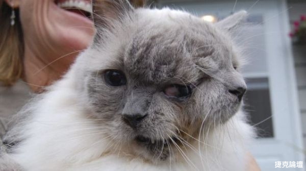 美國麻州一隻名叫 Frank and Louie 的公貓,因為 100 萬分之1的基因變異,出生時竟有兩張臉。原本獸醫判定牠活不過幾天,但在身為動物醫院護士的飼主悉心照料下,如今歡度12歲生日。牠的影片在網路上點閱人次超過32萬,這隻長壽雙面貓頓時成了網路明星,不但上電視亮相,還入選《金氏世界紀錄大全》,成為世界年紀最大的雙面貓。(Metro)